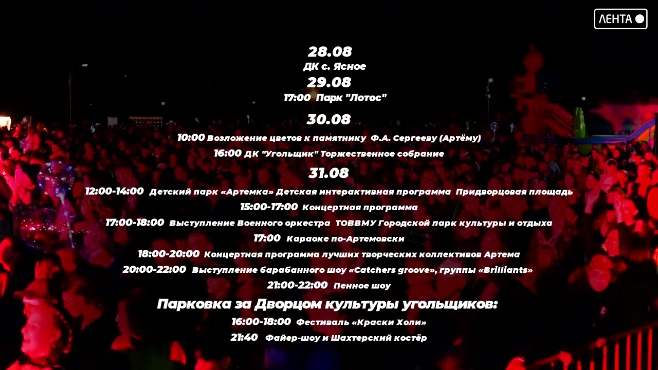 16:00 Торжественное собрание, посвященное 86-й годовщине города Артёма