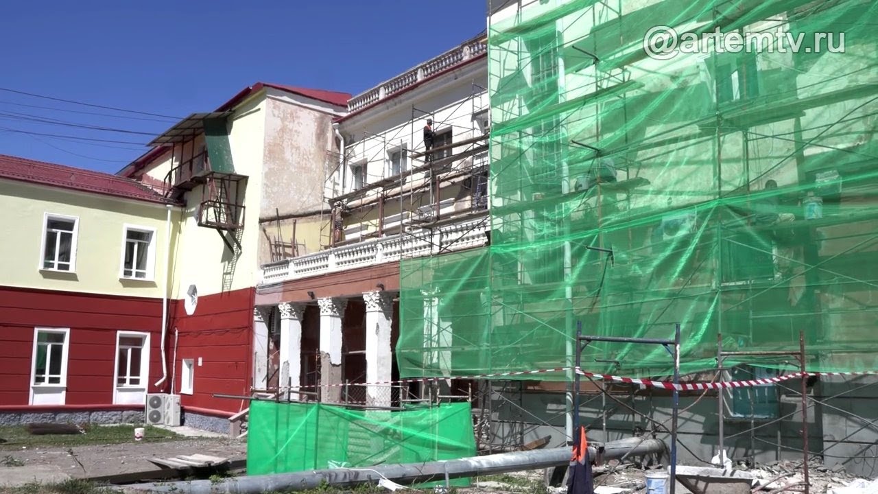 Дворец культуры города Артёма, памятник культурного наследия Приморского края, за 66 лет, капитально не ремонтировался ни разу. И если внешний фасад здания выглядит красиво и даже помпезно, то тыльная сторона неприглядно и местами убого. Памятник должен выглядеть, как памятник. Затянувшийся на 5 лет ремонт даёт возможность детально восстановить элементы декора, колонн и балюстрад, других особенностей внешнего облика и внутренних помещений. Инновации, адаптированные к современным условиям, требованиям безопасности и доступной среды, это тоже элемент конструктивного решения, не нарушающий целостности архитектурного образа. Сейчас на ремонтных работах, внутренней отделке и фасаде, задействованы более 40 рабочих, срок окончания 30 сентября. Работники культуры готовят крупное мероприятие уже к концу августа, ко Дню города.